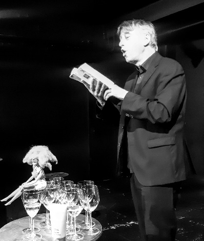 „Mám tady daleko menší trému, protože jsem doplňkem divadelního představení, za které nese odpovědnost Odo Macháček a jeho ensemble. I díky tomu mě čtení tady vyloženě baví,“ říká spisovatel Jáchym Topol.